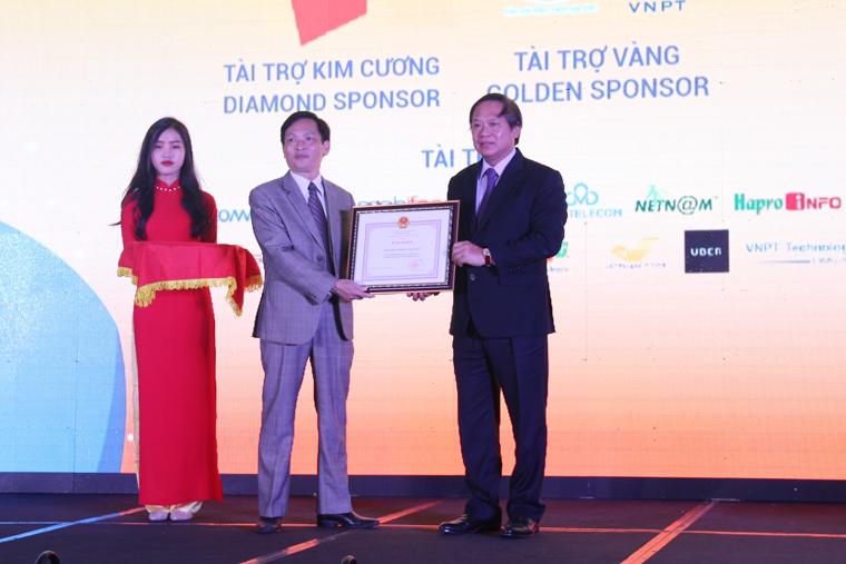 Bộ trưởng Bộ TT&TT Trương Minh Tuấn trao tặng Bằng khen của Bộ trưởng Bộ TT&TT cho Hiệp hội Internet Việt Nam