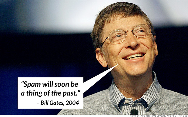 Phát biểu tại Diễn đàn Kinh tế Thế giới tại Davos, Thụy Sỹ, nhà sáng lập Microsoft tự tin thư rác sẽ sớm trở thành quá khứ. Gates cho rằng bộ lọc email và thách thức con người đặt ra như buộc người gửi phải giải một ô chữ trước khi gửi thư có thể cắt giảm lượng email không mong muốn. Ông còn nhắc đến giải pháp phạt tiền người gửi nếu tin nhắn bị trả lại.