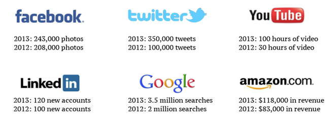 GP Bullhound vừa đưa ra bảng số liệu thống kê được ví như “lát cắt 1 phút” của thế giới Internet. Dù số liệu này chỉ mang tính tương đối, nhưng nó sẽ cho người dùng toàn cầu cái nhìn khái quát nhất về cách thức vận động và xu hướng phát triển của các dịch vụ lớn nhất trong thế giới mạng. Trong khi đó, bảng số liệu “Điều gì xảy ra trên Internet trong 1 phút” mà Intel đã công bố vào tháng 3/2012 cho biết, đến năm 2015, số lượng các thiết bị mạng dự kiến tăng gấp đôi dân số thế giới. Người dùng toàn cầu sẽ mất 5 năm để truy cập các mạng IP mỗi giây.
